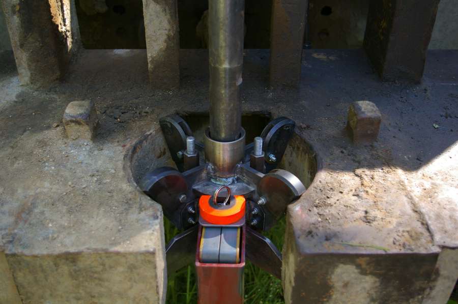 Центратор крепится на столе УРБ и обеспечивает удержание зонда в вертикальном положении. Устройство для измерения глубины погружения зонда выполнено из рулетки и крепится на центраторе, а измерительная лента устройства соединена с наковальней.