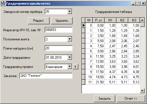 Программа позволяет обработать данные испытаний и получить отчетные документы для передачи проектировщикам. По результатам испытаний крыльчаткой выполняется расчет сопротивления грунта срезу и формируется отчет в соответствии