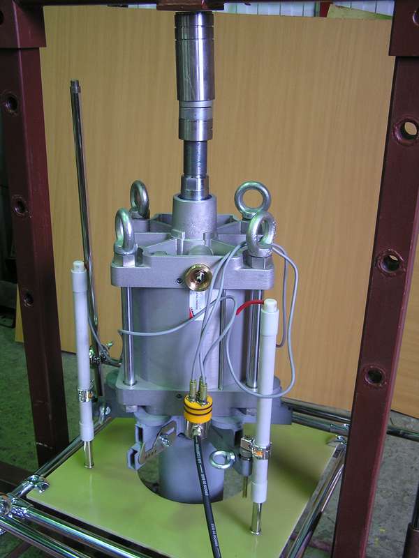 4. Стол реперной системы позиционируют относительно пневмоцилиндра и устанавливают измерители перемещений